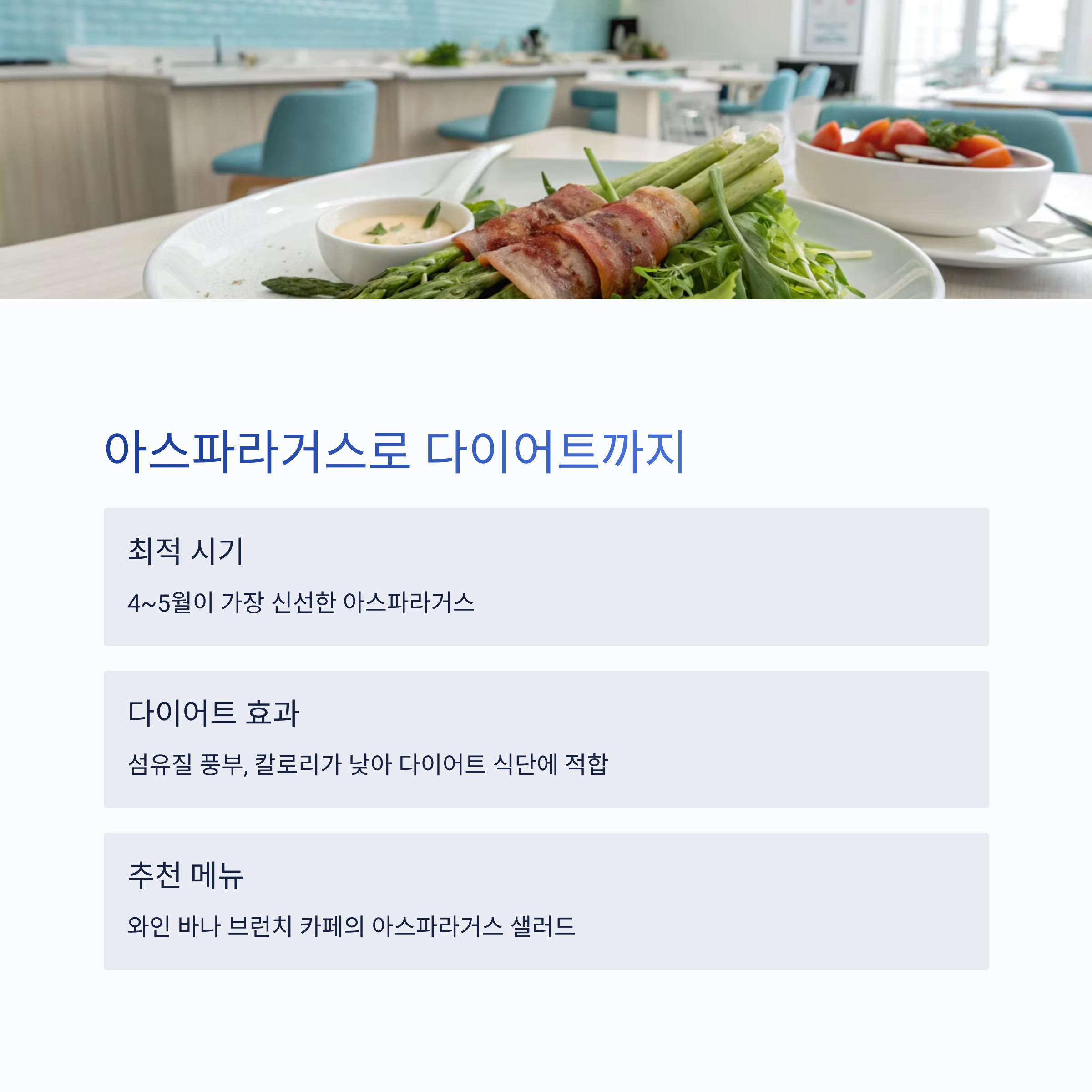 특히 와인 바나 브런치 카페에서 제공하는 아스파라거스 샐러드는 봄철 건강식을 대표하는 메뉴 중 하나입니다.