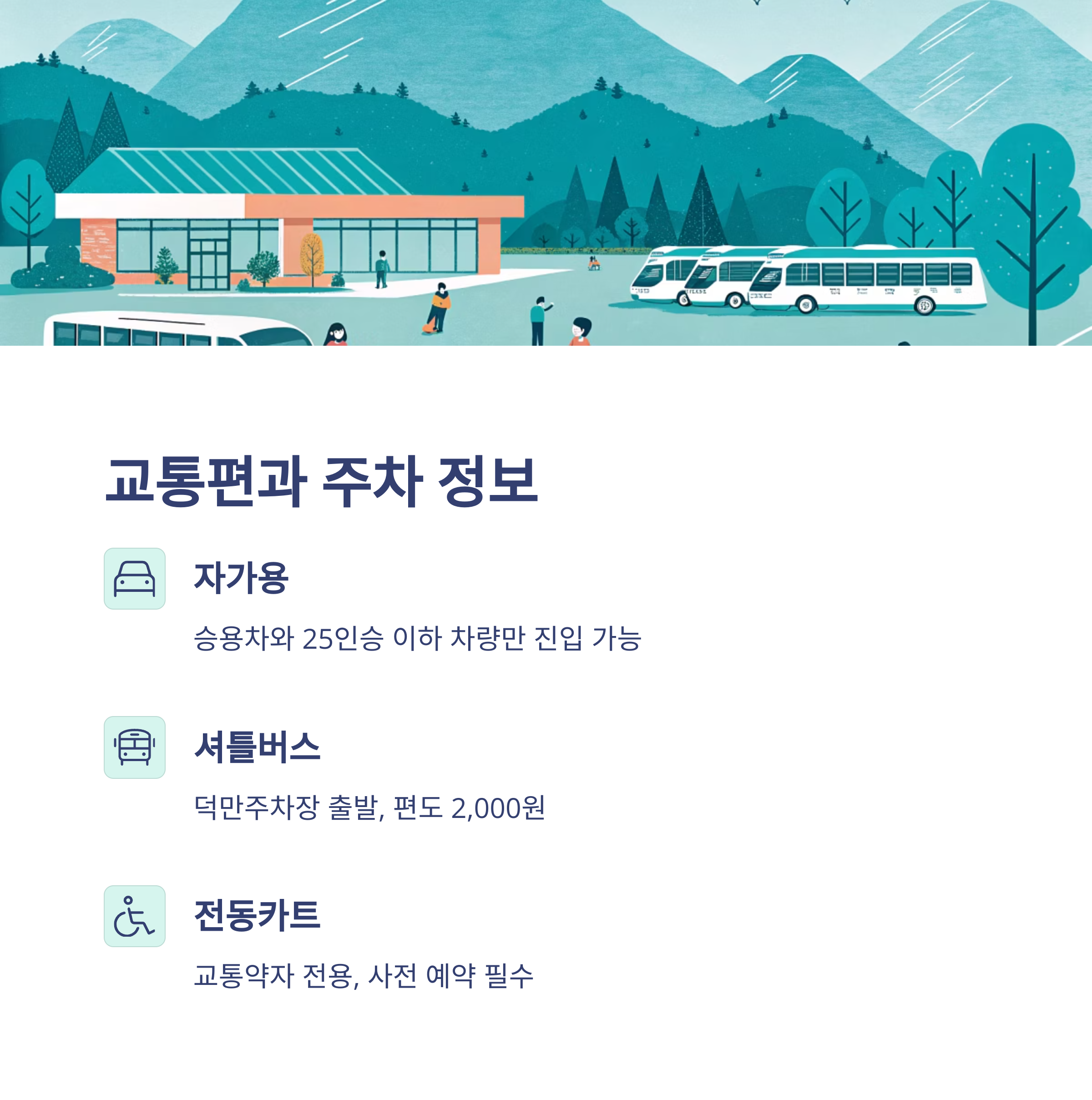 | 셔틀버스 | 덕만주차장 출발 | 5월 11일까지 운영 |