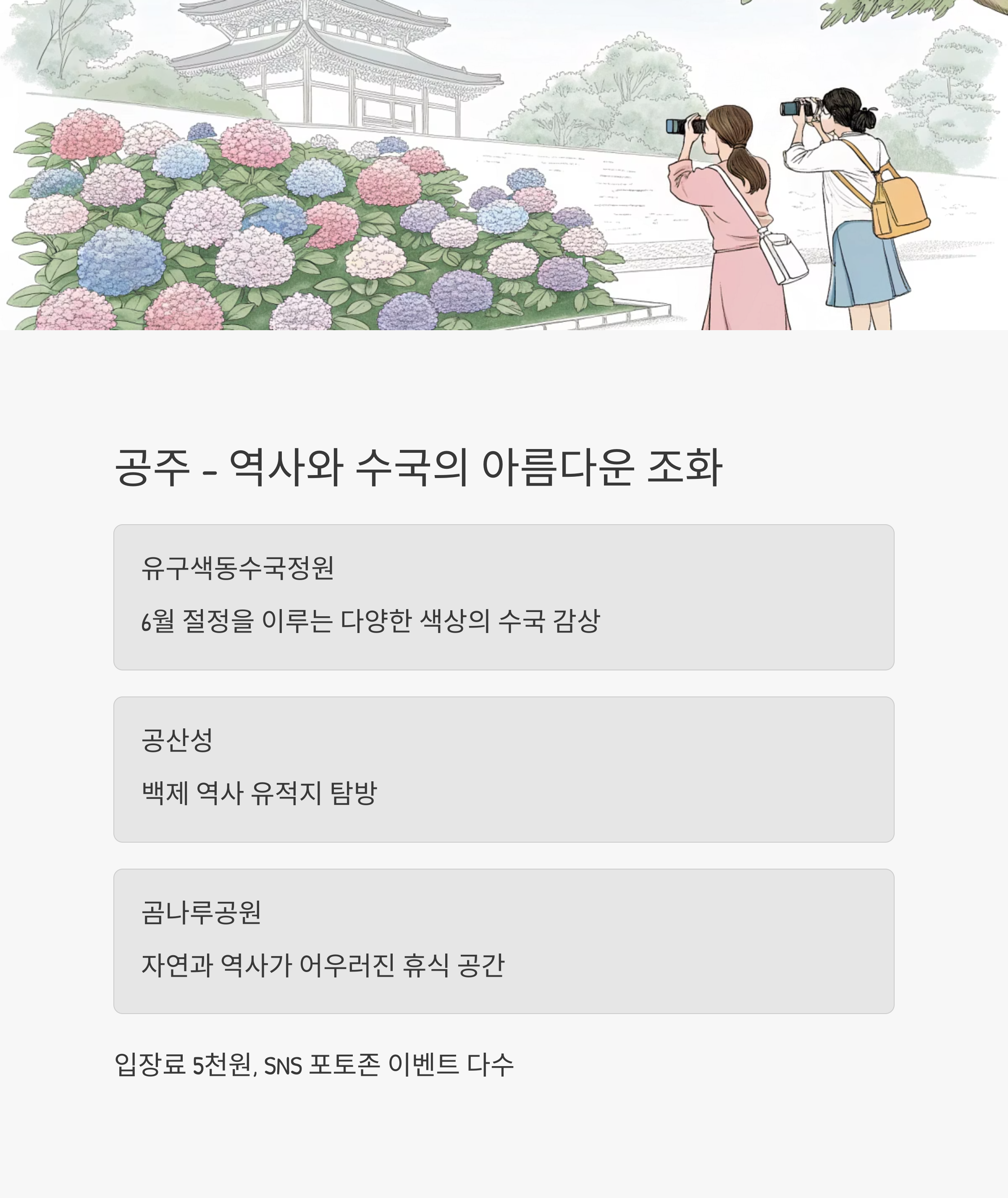공주는 6월 수국이 절정인 유구색동수국정원이 있고