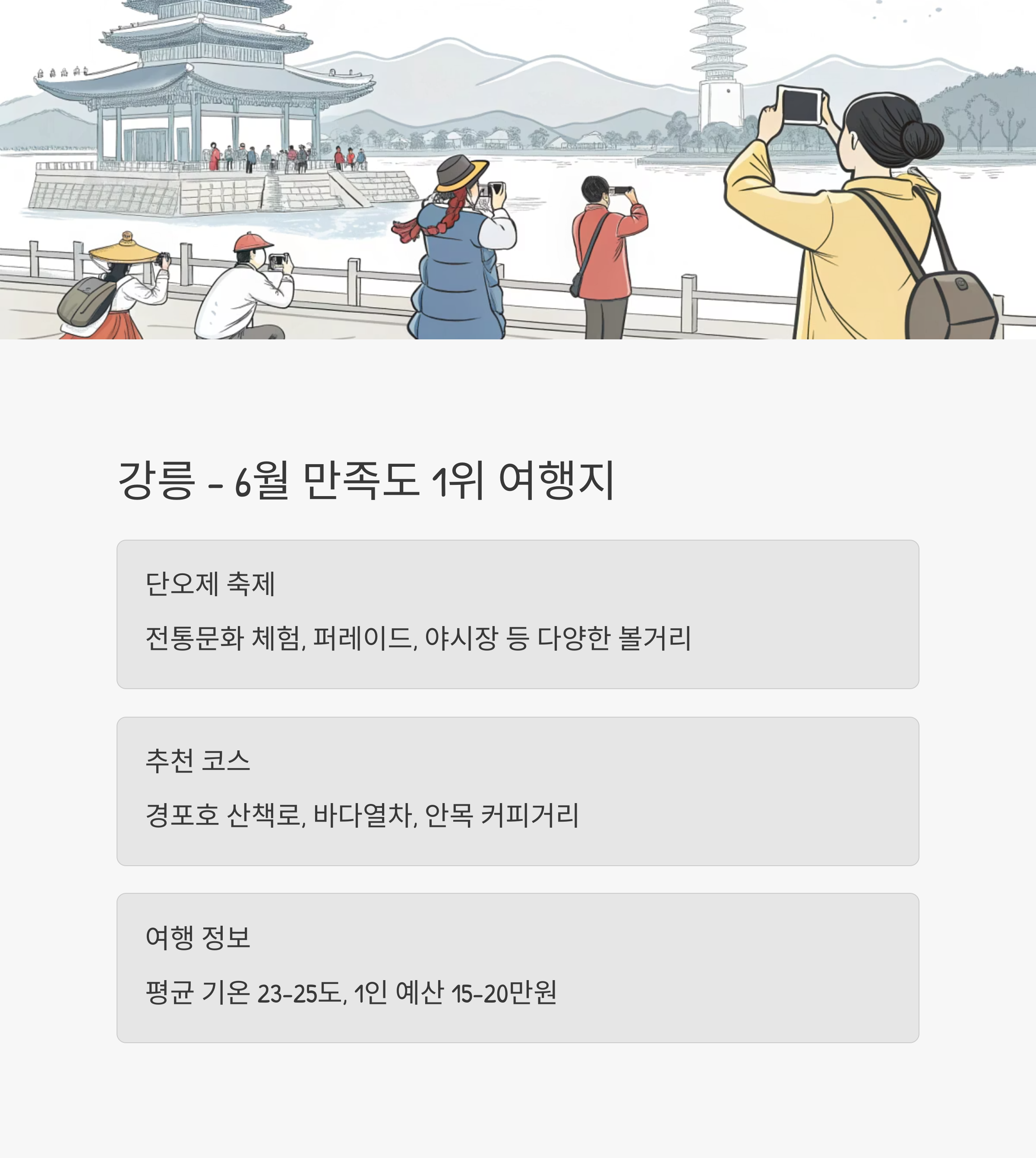 강릉은 6월 만족도 1위 여행지로, 단오제 기간에는