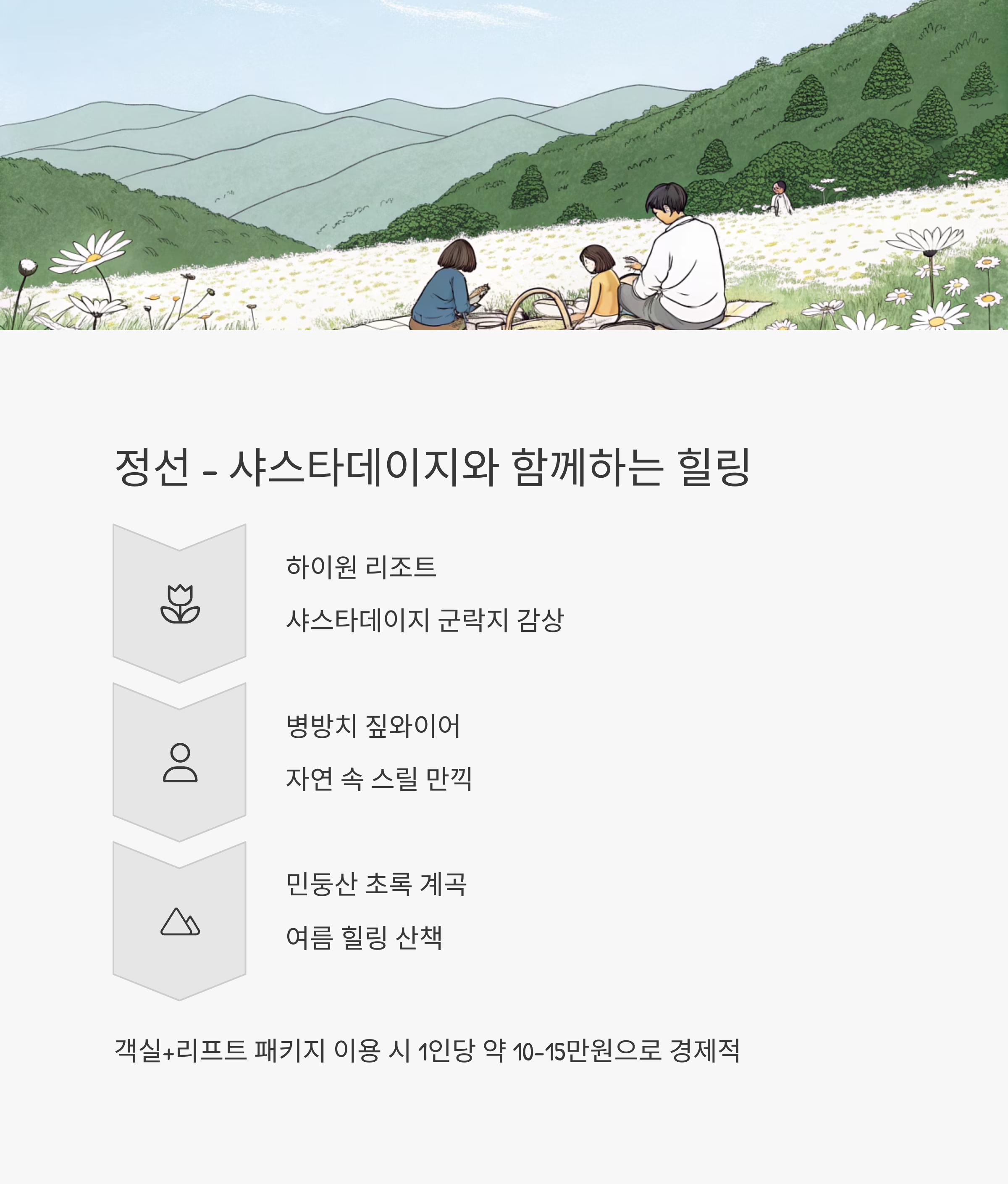 객실+리프트 패키지를 이용하면 1인당 약 10만~15만 원에