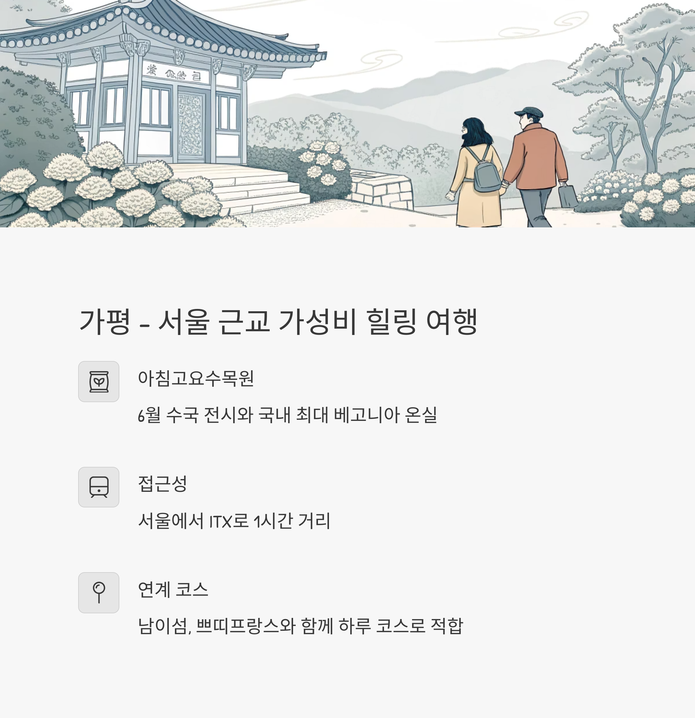 가평은 서울에서 ITX로 1시간이면 도착하는