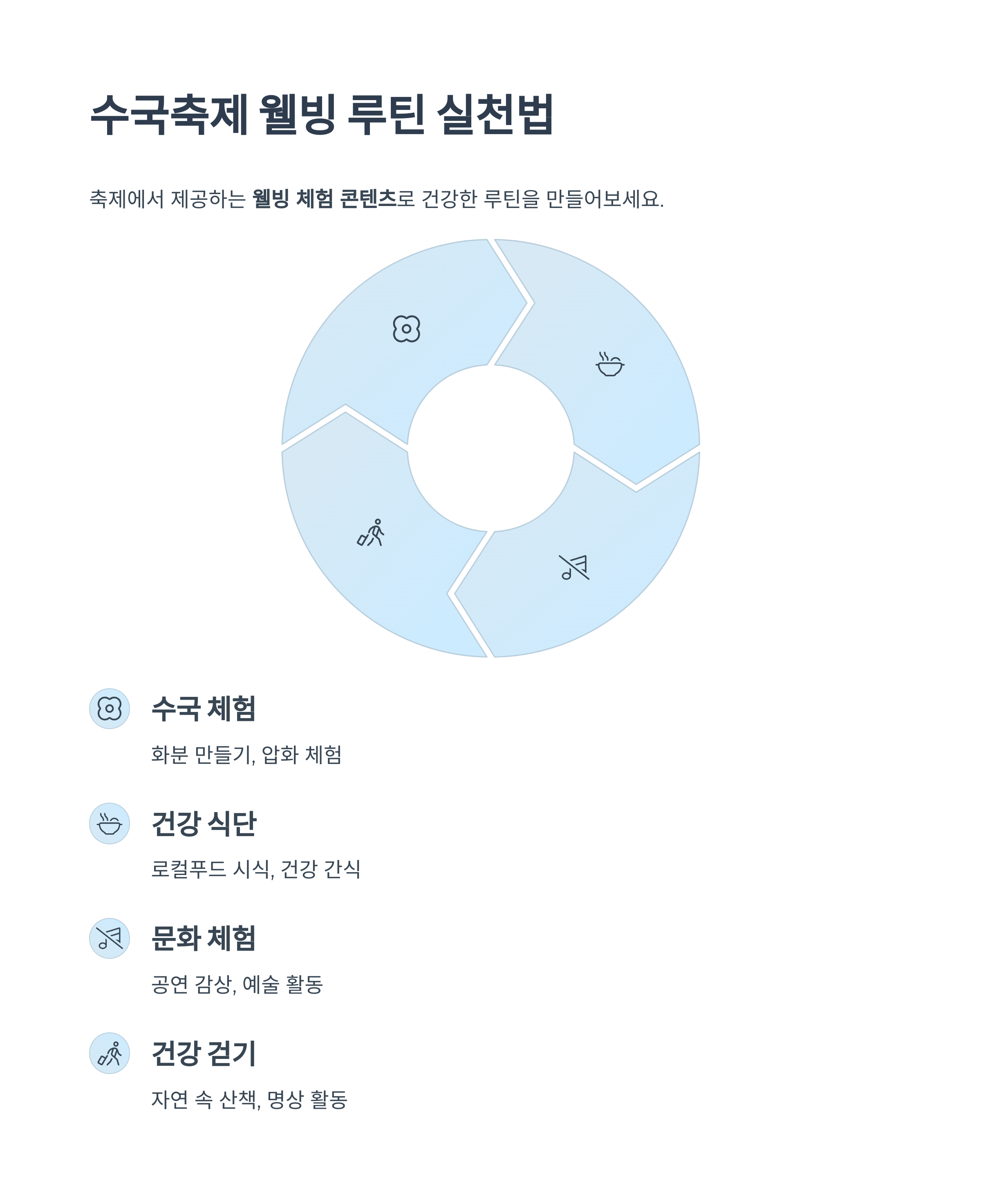 모든 요소가 어우러진 축제 속에서 건강 루틴을 자연스럽게 실천할 수 있습니다