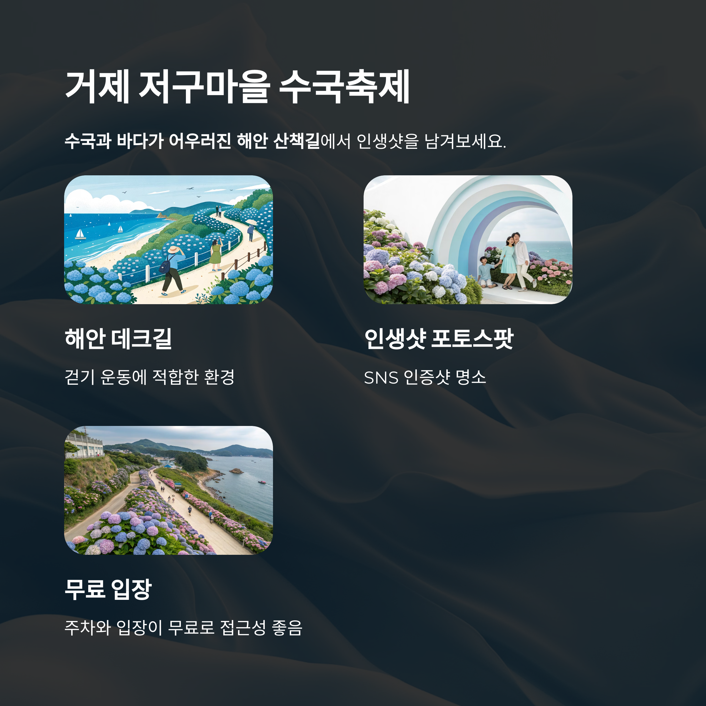 거제 저구마을 수국축제: 바닷길 따라 걷는 인생샷 명소