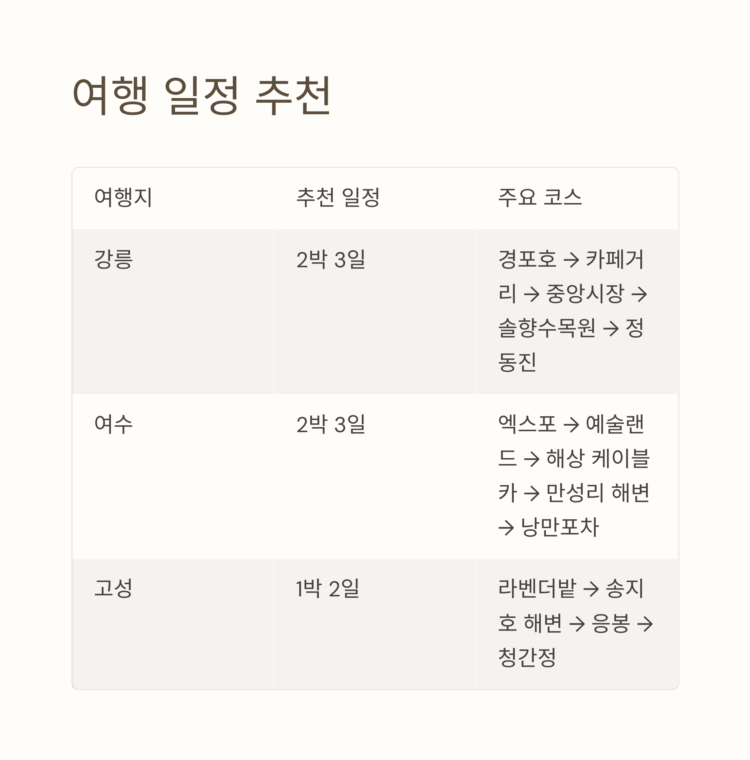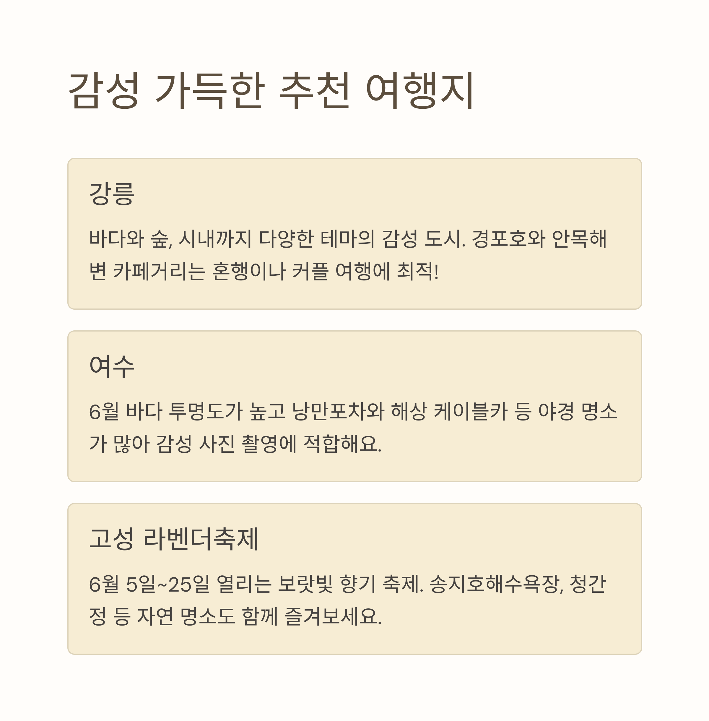 데이터와 최신 자료를 바탕으로 강릉, 여수, 고성의 여행 매력을 꼼꼼히 정리한 국내 여행 가이드입니다.