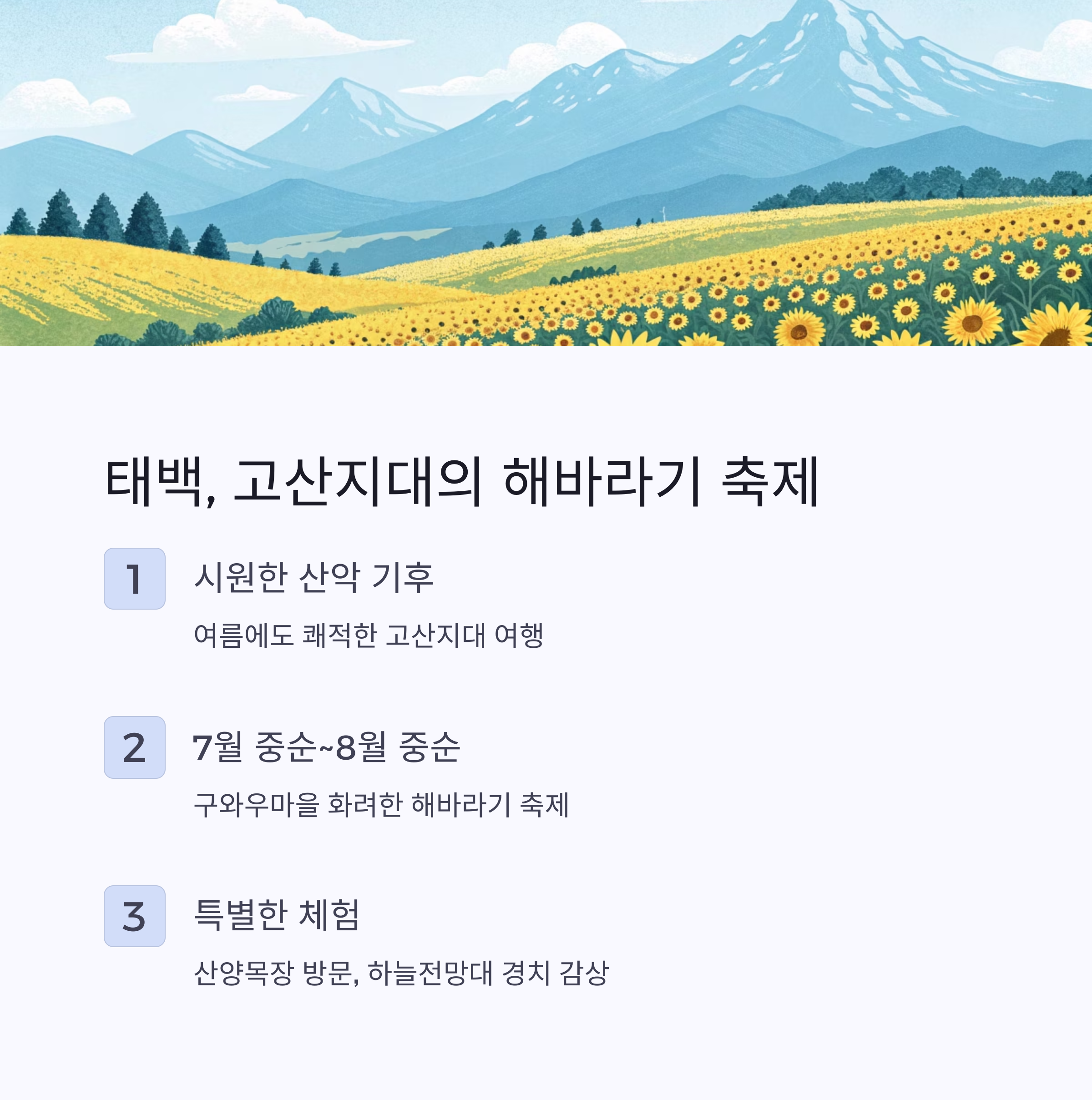 | 강원 태백 | 고산지대, 축제 | 해바라기 축제 방문 |