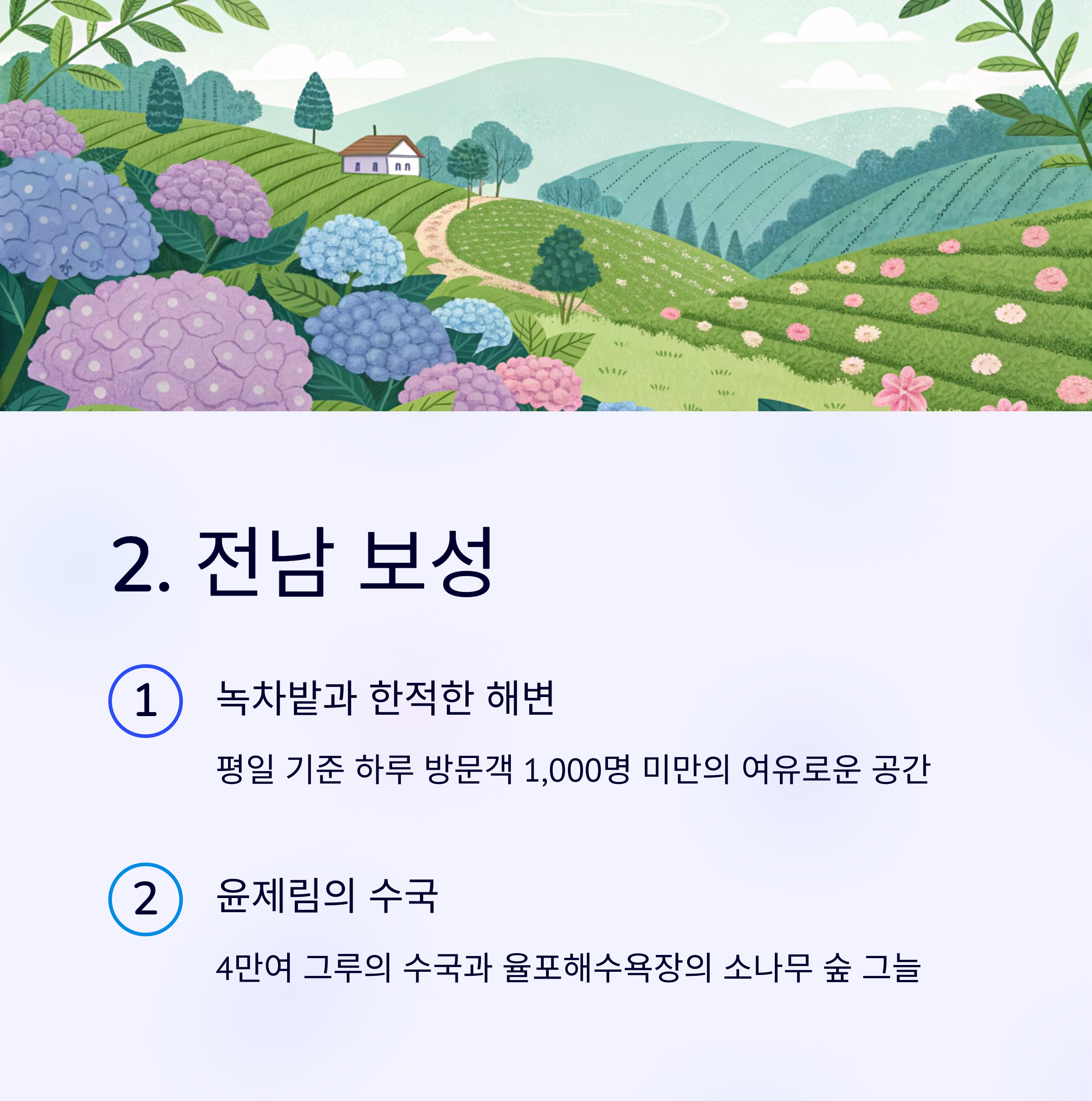 2. 전남 보성 – 대한다원의 녹차 향기와 율포해변의 청량함
