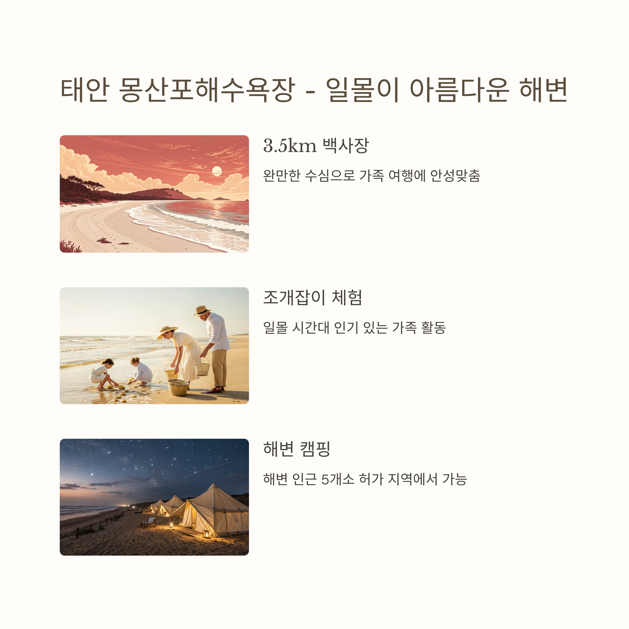 태안 몽산포해수욕장 – 넓은 백사장과 일몰의 조화