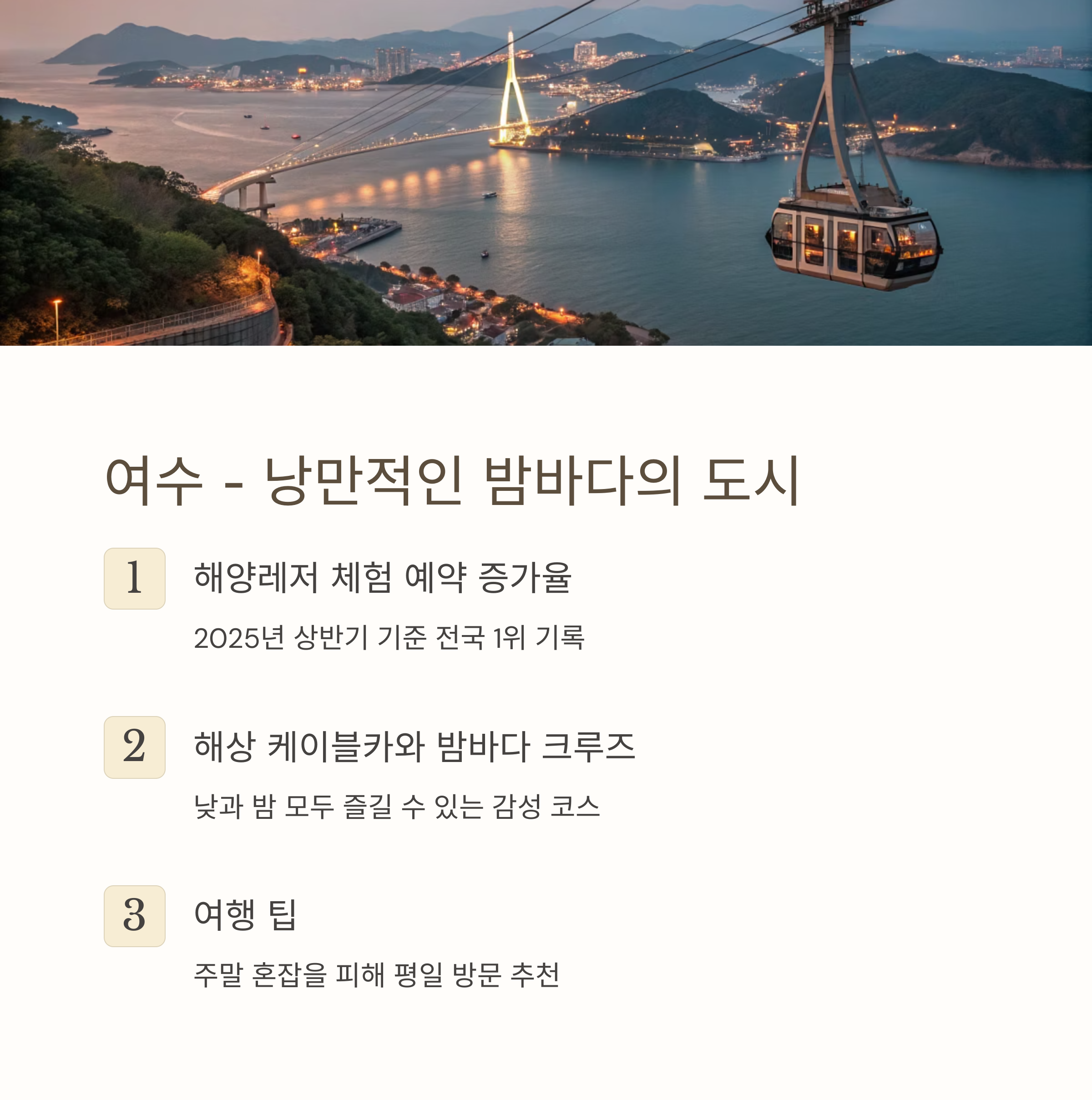 여수 – 해상 케이블카와 밤바다 크루즈가 선사하는 감성