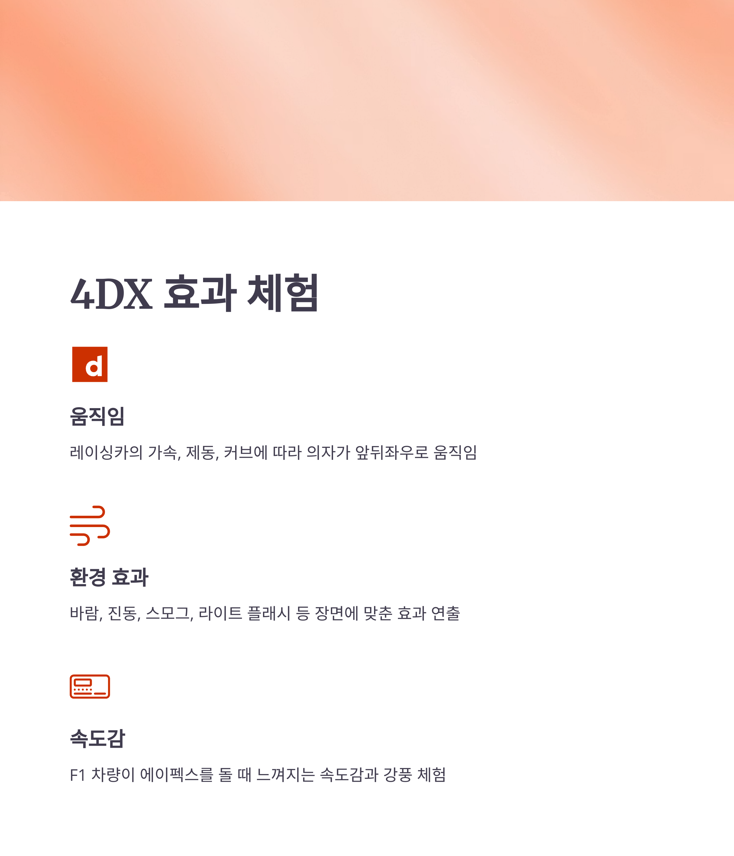 4DX는 단순한 영상 감상이 아닌 ‘오감 체험’을 제공합니다.